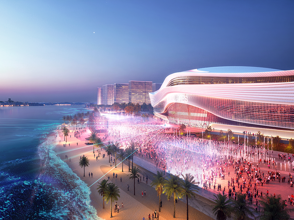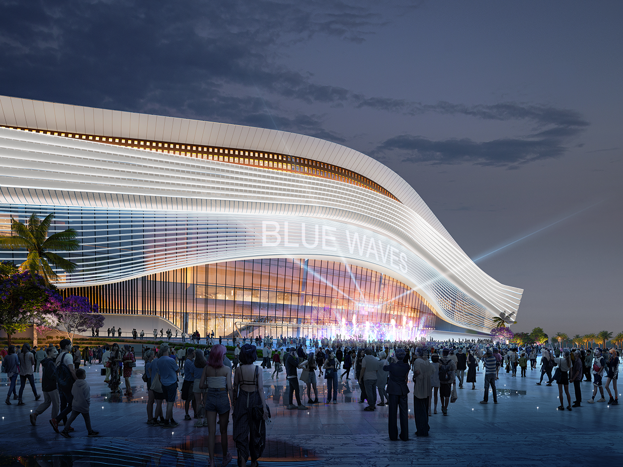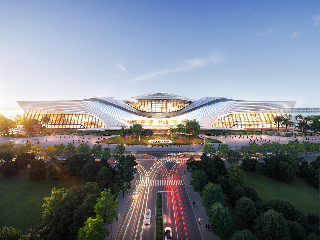 Nhà hát Sóng Xanh (Blue Wave Theater) là trung tâm biểu diễn nghệ thuật quốc tế có sức chứa 5.000 chỗ ngồi. Công trình tích hợp các phòng hội nghị và không gian triển lãm hiện đại, đủ năng lực tổ chức các sự kiện văn hóa toàn cầu. Thiết kế độc đáo lấy cảm hứng từ những con sóng biển tạo nên điểm nhấn kiến trúc ấn tượng.