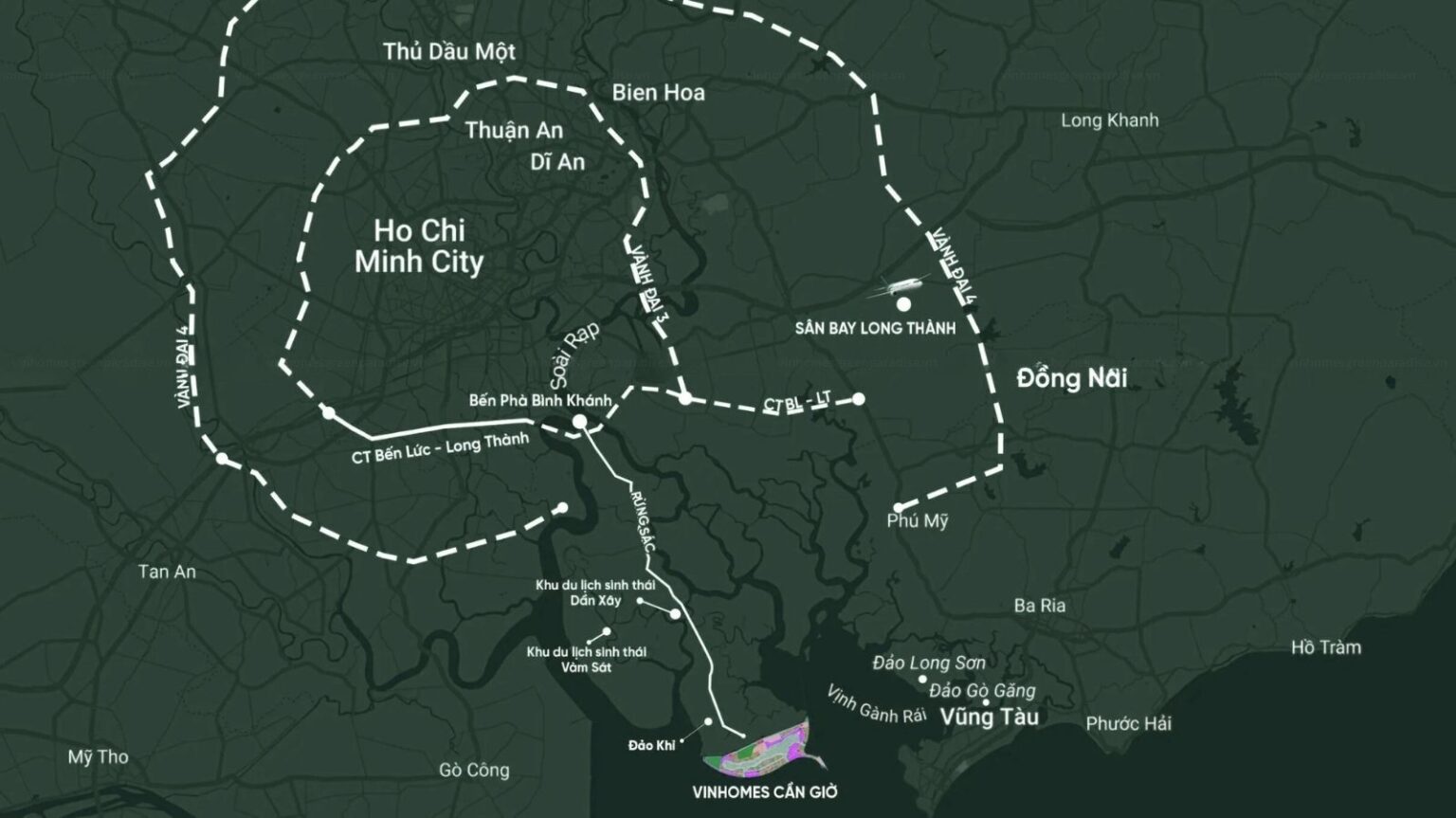 Khoảng cách di chuyển từ Vinhomes Cần Giờ đến các khu vực quan trọng: